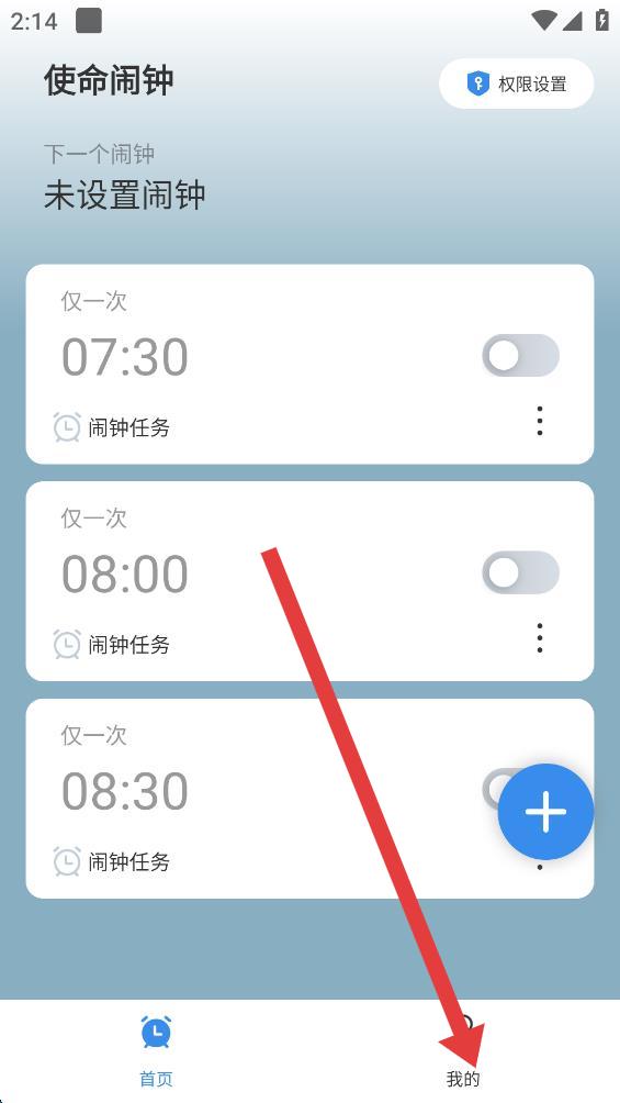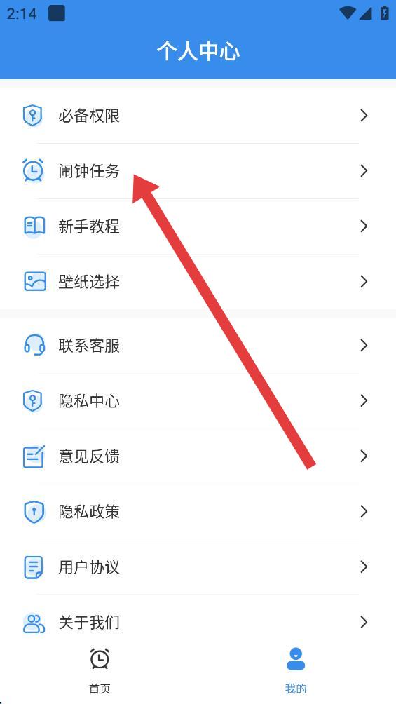 2、在個人中心頁面里,找到并點擊鬧鐘任務(wù)選項,進入鬧鐘任務(wù)的設(shè)置界面。