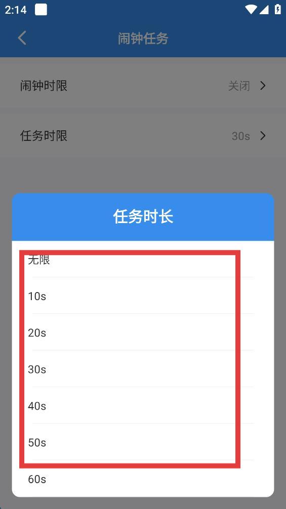 3、在鬧鐘任務(wù)設(shè)置界面中,找到任務(wù)時限相關(guān)選項并點擊。