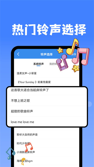 2、各種好聽的鈴聲提供大家選擇,大家還可以自定義設(shè)置喜歡的鈴聲;