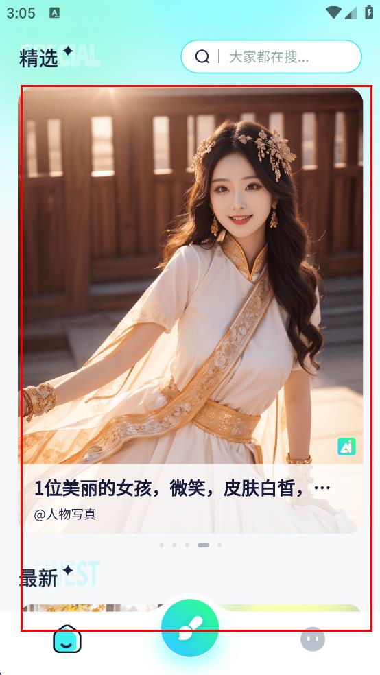 4、登錄成功后,進(jìn)入APP主界面,可瀏覽精選AI畫作等內(nèi)容。