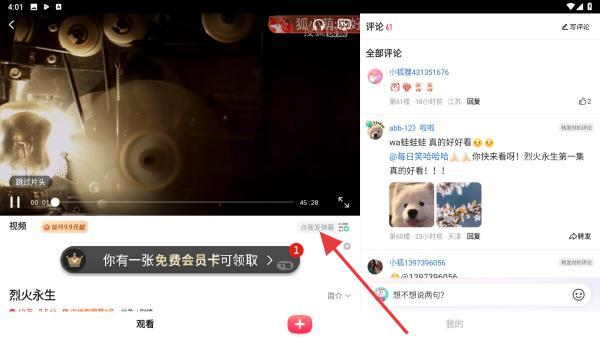2、進入到播放頁面,在播放頁面下有點擊發(fā)彈幕的字眼,點擊后即可觸發(fā)該功能。