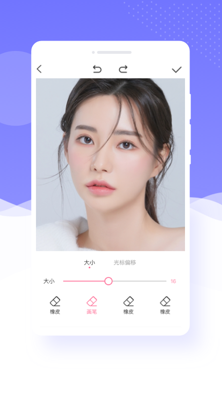 1、自拍模式時(shí),軟件會自動(dòng)的識別幫助大家簡單的化妝,例如口紅眼影這些;