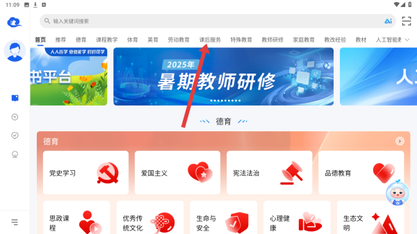 1、在智慧中小學(xué)主頁面,找到頂部導(dǎo)航欄的課后服務(wù)選項(xiàng)并點(diǎn)擊,進(jìn)入課后服務(wù)專屬板塊,開啟各類課后活動內(nèi)容的探索之旅。