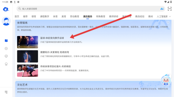 3、在課后服務(wù)的體育鍛煉分類下,點(diǎn)擊籃球課前熱身手球等具體課程條目,進(jìn)入詳情頁,查看該課程的教學(xué)內(nèi)容與方法等信息。