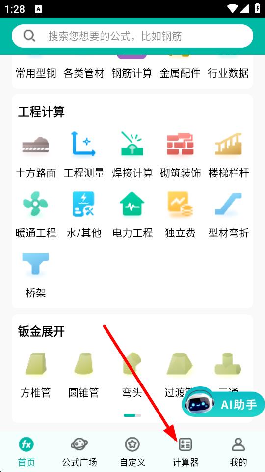 1、打開建工計(jì)算器應(yīng)用,點(diǎn)擊底部導(dǎo)航欄中的計(jì)算器選項(xiàng)。