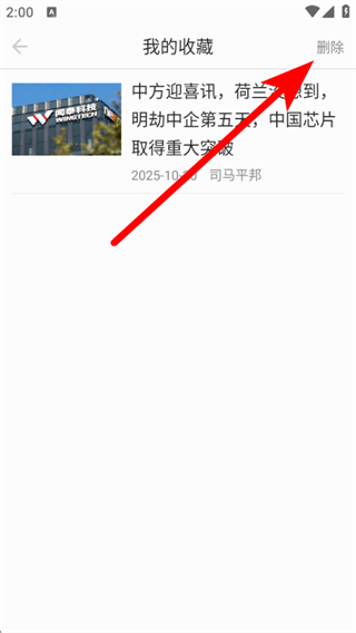 3、在收藏列表頁面點擊右上角刪除,進入刪除選擇的狀態(tài)。