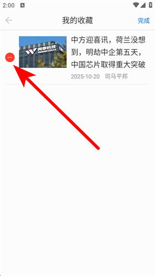 4、點擊要刪除的收藏內(nèi)容左側(cè)的紅色按鈕,即可刪除該收藏內(nèi)容。