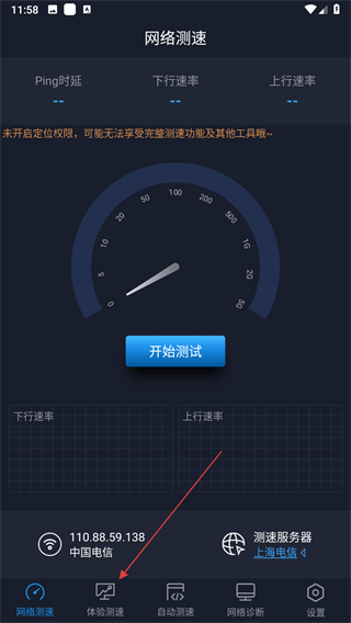 1、打開全球網(wǎng)測(cè)應(yīng)用,點(diǎn)擊體驗(yàn)測(cè)速選項(xiàng),即可進(jìn)入體驗(yàn)。