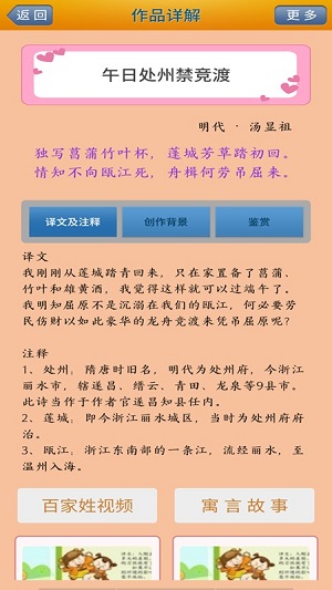 2、在這里可以獲得詳細(xì)的詩(shī)歌內(nèi)容,并查看相應(yīng)的注釋?zhuān)?