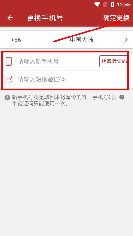4、在新頁面輸入新手機號,點擊獲取驗證碼,收到驗證碼后填入對應(yīng)框內(nèi),點擊確定更換即可完成換綁。