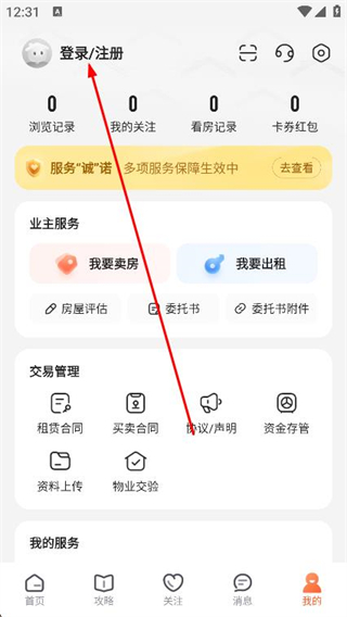 2、在我的頁面中,找到并點擊上方的登錄/注冊選項。