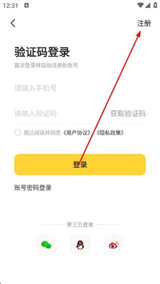 3、進(jìn)入登錄界面后,找到并點擊右上角的注冊選項。