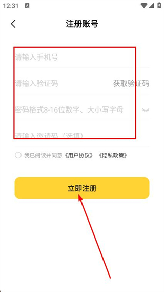 4、根據(jù)提示填寫信息,點擊立即注冊,即可完成注冊。