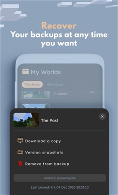 我的世界備份工具箱app是一款非常實(shí)用的手機(jī)游戲數(shù)據(jù)備份軟件,能夠幫助用戶將游戲中的各種數(shù)據(jù)進(jìn)行備份,在換機(jī)時(shí)能夠?qū)?shù)據(jù)轉(zhuǎn)移到另一個(gè)設(shè)備上,軟件中還有非常多樣的游戲工具,能夠幫助用戶享受更加舒適的游戲環(huán)境,還支持用戶隨時(shí)開啟地圖備份功能,幫助之后使用。
