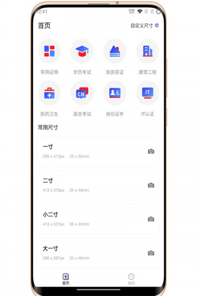 3、各種證件照的尺寸規(guī)格這里都有,還支持大家自定義尺寸。