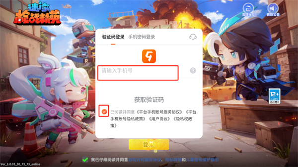 3、進入到注冊頁面后,玩家需要在方框內(nèi)填入自己的手機號,并點擊屏幕下方的同意框,最后點擊獲取驗證碼按鈕,即可完成注冊;