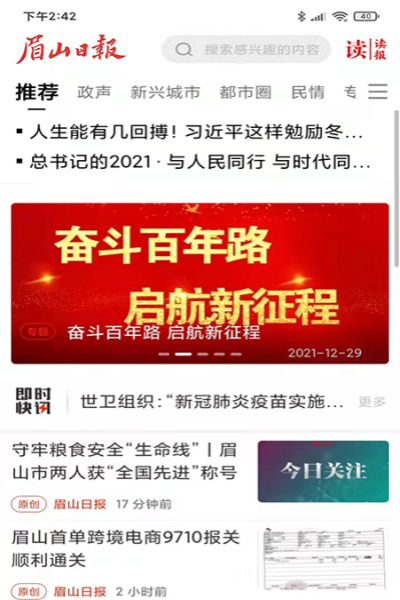 一款是眉山日報在線新聞客戶端,功能上就提供了黨政、社會、民生在內(nèi)的多方面服務(wù)內(nèi)容,在這里匯聚了眉山本地的新熱門的新聞資訊,眾多的服務(wù)隨心使用。