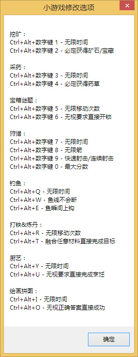 Ctrl+Alt+數(shù)字鍵 2 - 必定獲得礦石/寶藏
