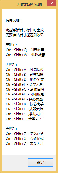 11. 天賦修改在激活后,存檔再讀檔才能看到效果。