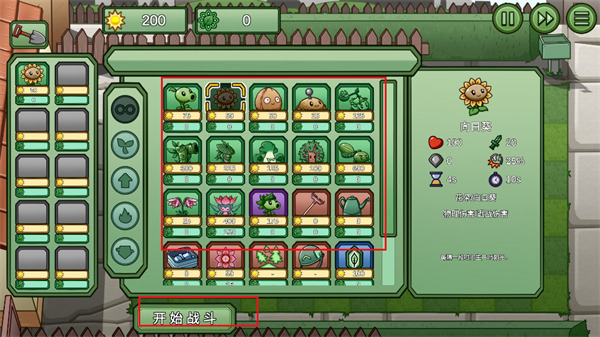 2、隨后,你需要挑選本關(guān)需要的植物,并添加到選擇框當(dāng)中;