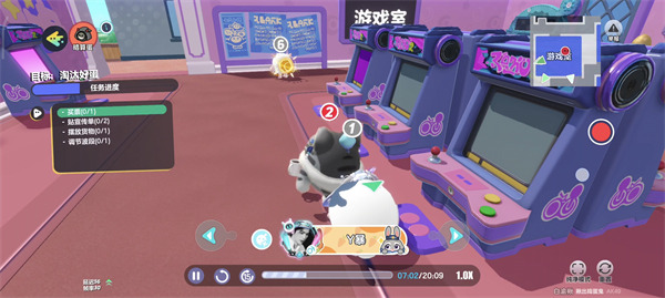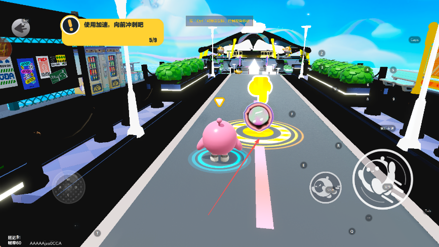 2、遇到使用加速,向前沖刺吧提示,在合適時機點擊加速按鈕,讓蛋仔快速向前,通過前方道路,獲取道具或到達(dá)指定地點。