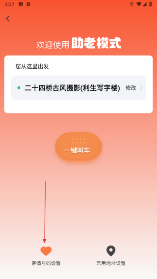 2、在助老模式界面,點(diǎn)擊左下角親情號(hào)碼設(shè)置,進(jìn)入添加緊急聯(lián)系人頁(yè)面。