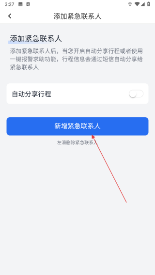 3、在添加緊急聯(lián)系人頁(yè)面,點(diǎn)擊新增緊急聯(lián)系人按鈕。