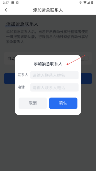 4、在彈出的添加緊急聯(lián)系人彈窗中,輸入聯(lián)系人姓名和電話,點(diǎn)擊確認(rèn)按鈕,完成親情號(hào)碼的設(shè)置。