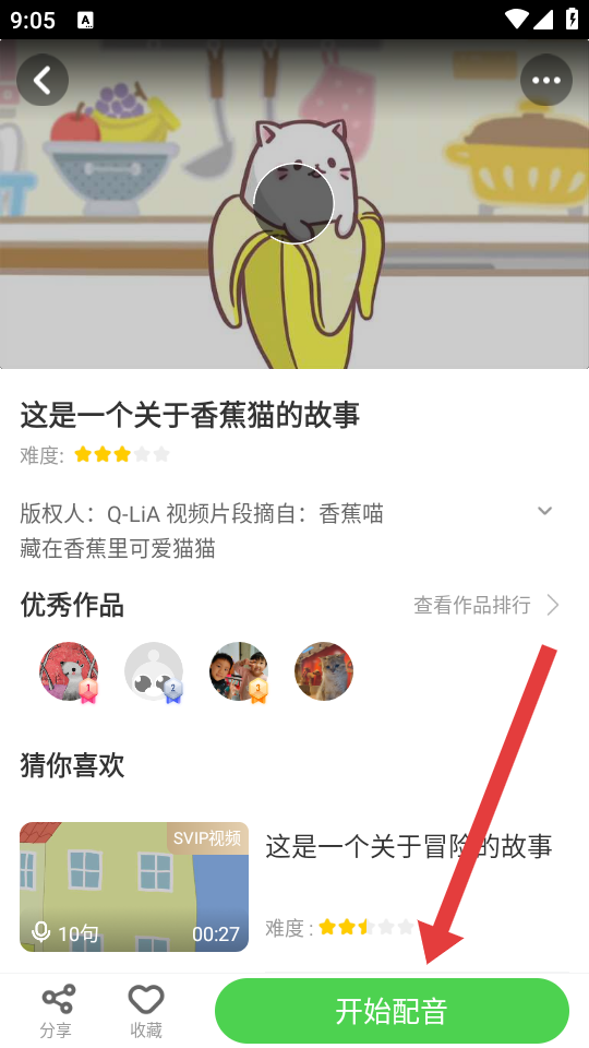 2、在視頻詳情的頁面,點擊綠色的開始配音按鈕,進入配音編輯的界面。