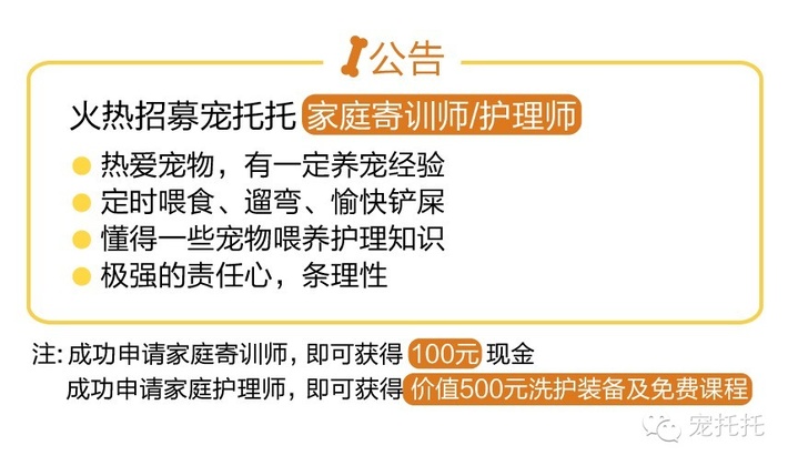 通過寵托托,您可以找到符合您要求的寄訓(xùn)家庭,讓寄養(yǎng)、訓(xùn)練成為寵愛傳遞的橋梁。通過寵托托平臺的信用安全機制,保障寵物主人及寄訓(xùn)師的權(quán)益,讓寵愛持續(xù)不斷地發(fā)光發(fā)熱。