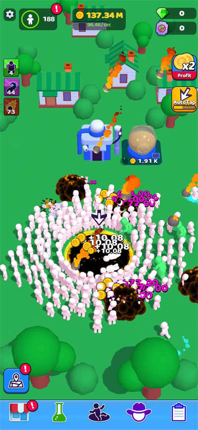 游戲是通過指尖滑動來控制角色的奔跑方向,在這個游戲中玩家可以控制人群在關(guān)卡中享受沖刺吞沒,有很多障礙需要你注意,會阻礙你的吞噬區(qū)域,直到最后吞噬一切,獲勝,新穎有趣的游戲。