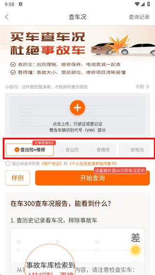 3、根據(jù)人格需求選擇查詢類型,如查出險+維修等。