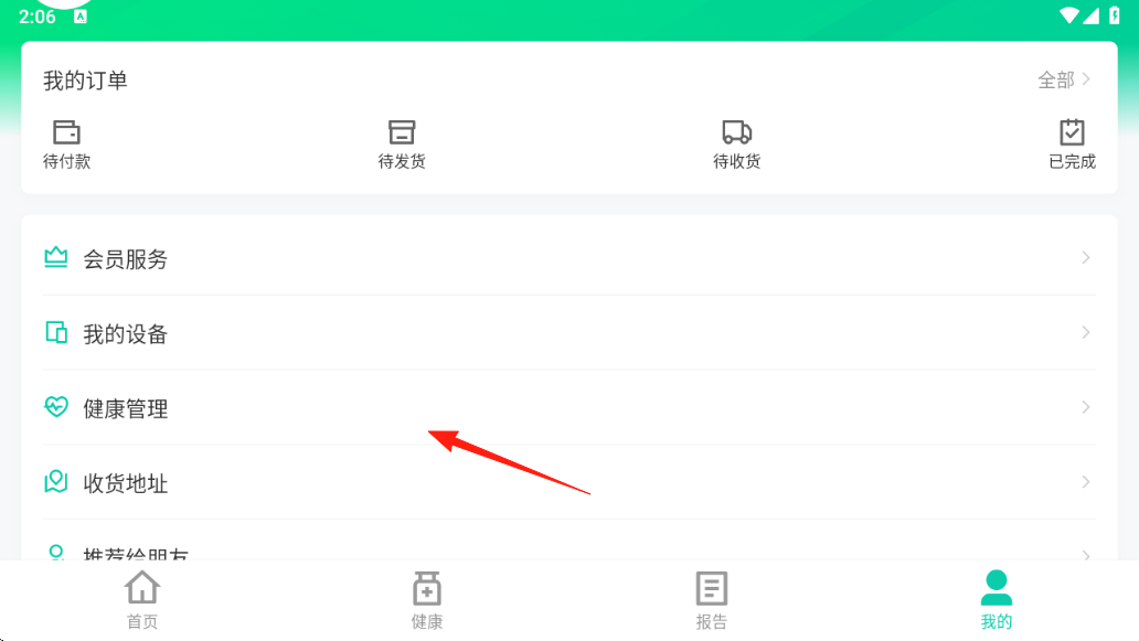 2、切換到底部導(dǎo)航我的頁面,在功能列表里找到健康管理選項(xiàng)并點(diǎn)擊,進(jìn)入后可查看歷史檢測數(shù)據(jù),還能設(shè)置健康管理相關(guān)參數(shù),完善個(gè)人健康管理方案