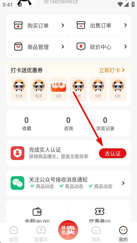2、在我的頁(yè)面中,找到完成實(shí)人認(rèn)證板塊,點(diǎn)擊去認(rèn)證按鈕。