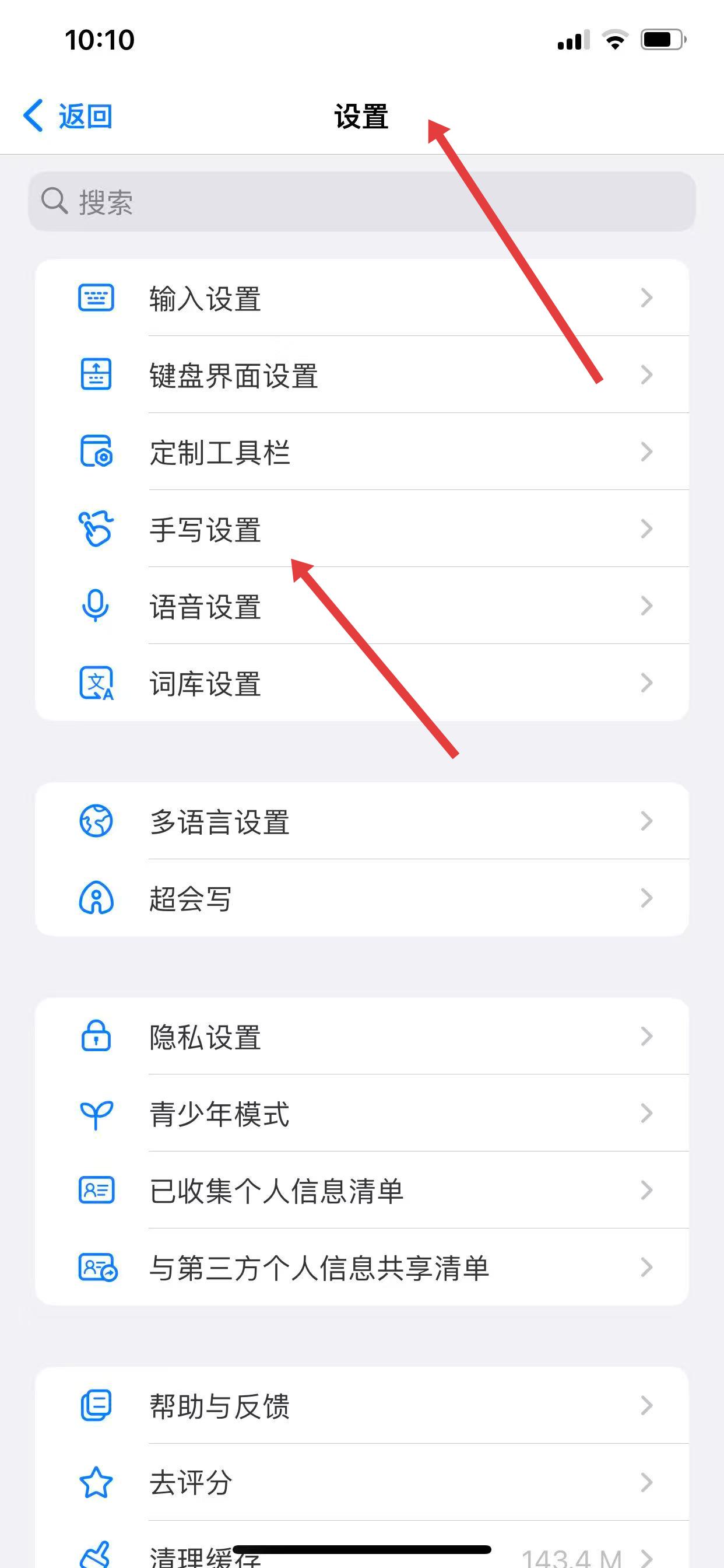 1、打開百度輸入法,進(jìn)入設(shè)置后,找到并點(diǎn)擊手寫設(shè)置選項(xiàng)。