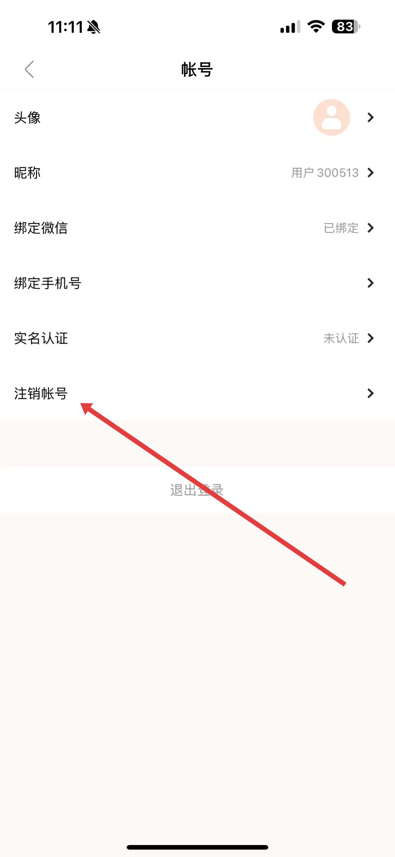 3、在帳號設置界面里,找到并點擊注銷帳號選項。