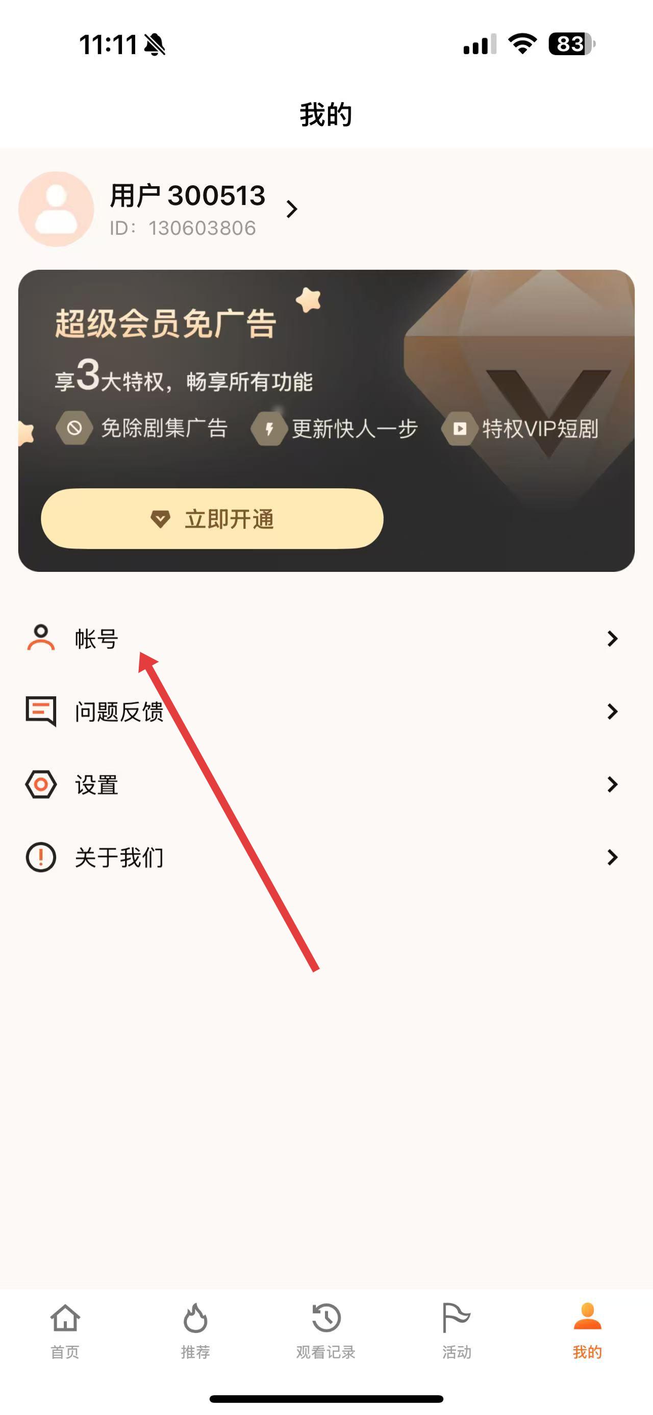 2、在個人頁面中,點擊帳號選項,進入帳號設置界面。