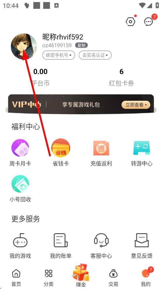 1、打開紅果游戲盒子app,點(diǎn)擊底部導(dǎo)航欄最右側(cè)我的進(jìn)入個(gè)人中心頁面。
