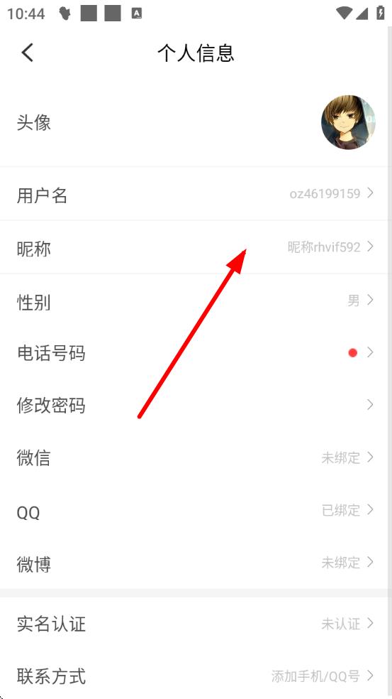 3、在個(gè)人信息界面里,找到昵稱選項(xiàng),點(diǎn)擊其右側(cè)箭頭,輸入新名字后確認(rèn)修改即可。