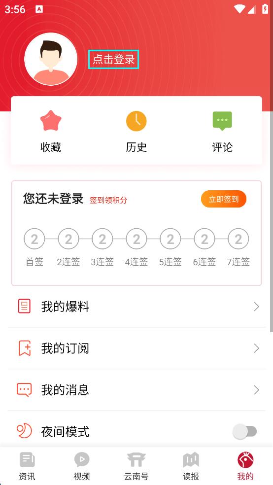 3、在個人頁面,點擊上方點擊登錄按鈕,進入登錄界面。