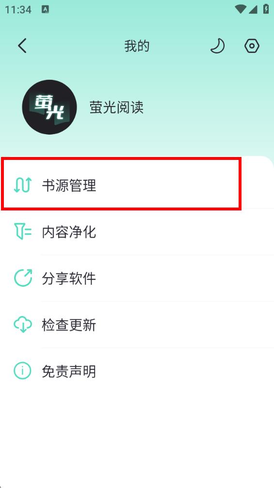 2、在個(gè)人界面中找到并點(diǎn)擊書(shū)源管理選項(xiàng)。
