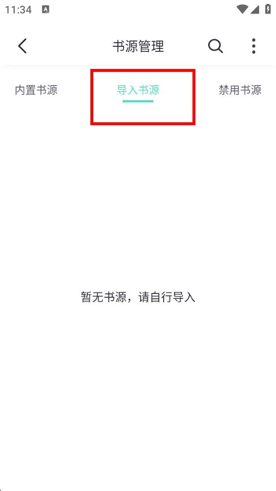 3、進(jìn)入書(shū)源管理界面后,點(diǎn)擊導(dǎo)入書(shū)源按鈕,按照提示操作完成書(shū)源導(dǎo)入。