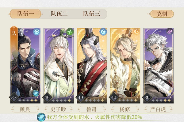 6、最后就是嚴(yán)白虎+顏良技能一起放,其他的角色全防御