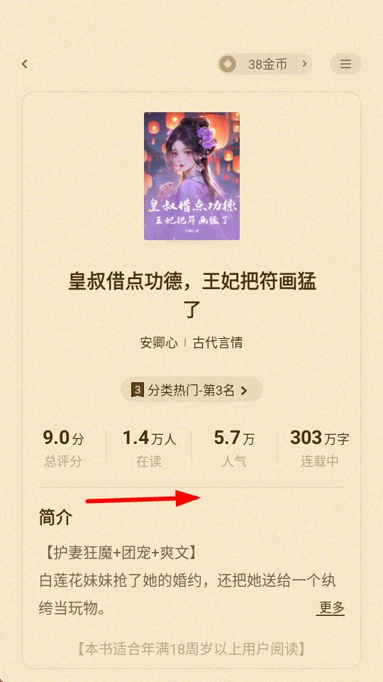 3、在小說詳情頁中,查看小說簡介等信息后,點(diǎn)擊閱讀按鈕進(jìn)入小說閱讀界面。