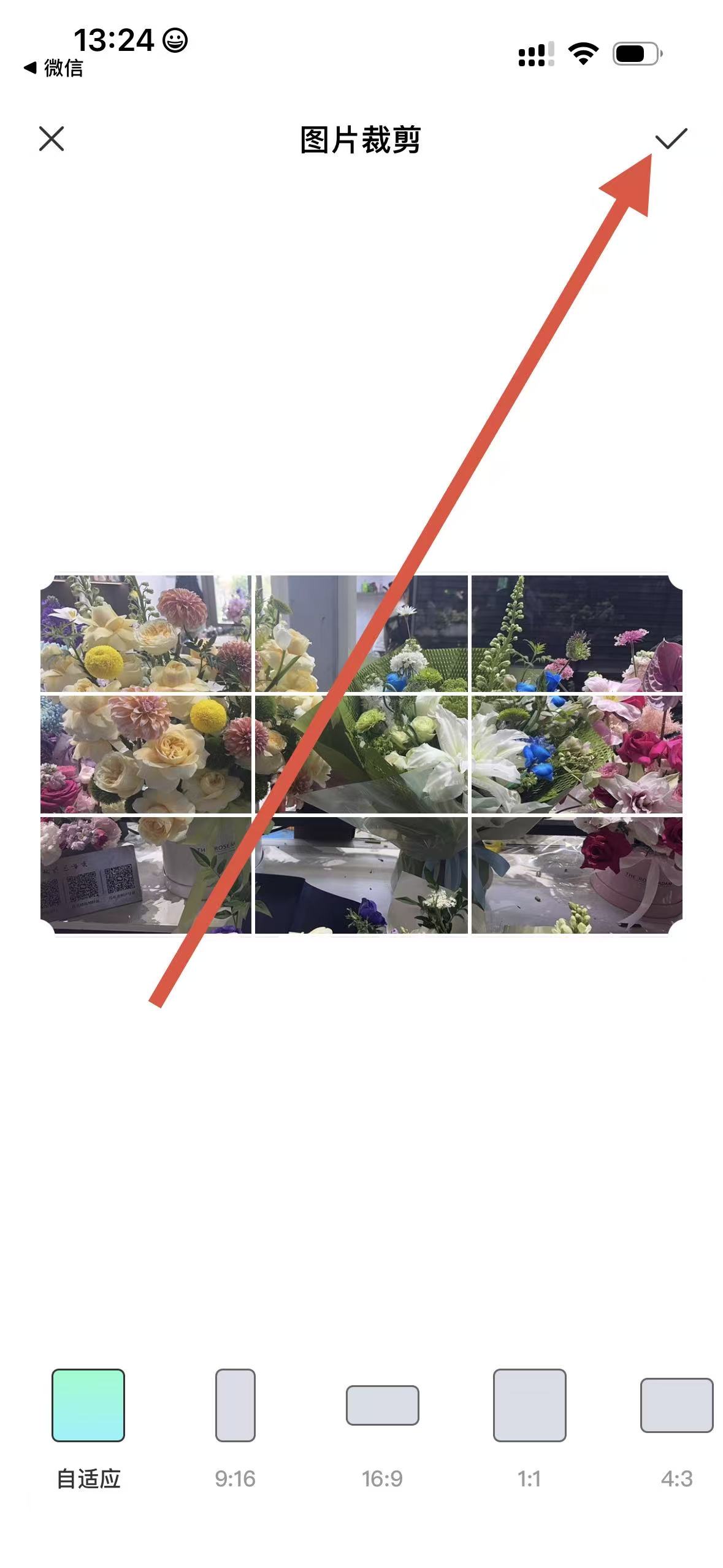 3、進(jìn)入圖片裁剪頁面,對(duì)圖片進(jìn)行裁剪調(diào)整,完成后點(diǎn)擊右上角確認(rèn)圖標(biāo)。