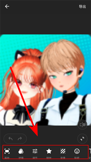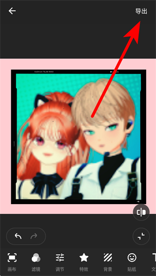 4、圖片編輯完成后,點(diǎn)擊右上角的導(dǎo)出按鈕,將編輯好的圖片保存到手機(jī)。