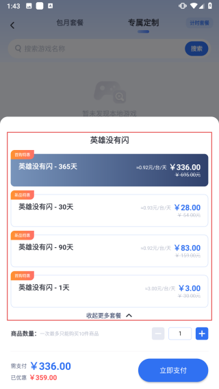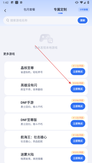 2、進入套餐選擇頁面后,找到目標游戲套餐,點擊套餐右側(cè)的立即購買按鈕。