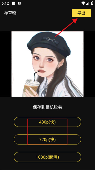 5、在導出時需要選擇視頻畫質,這樣能避免占用設備的空間,如下圖;