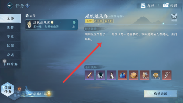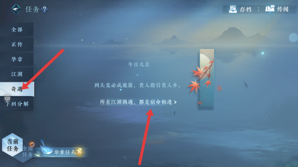 3、若要查看奇遇任務(wù)進(jìn)度,點(diǎn)擊任務(wù)界面左側(cè)列表里的奇遇選項(xiàng),右側(cè)呈現(xiàn)詳細(xì)信息與進(jìn)度。