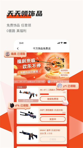 為用戶們提供大數(shù)據(jù)護(hù)航交易平臺,安全可靠的交易方式打造信任交易,app中提供千萬補(bǔ)貼項(xiàng)目,支持CS中海量的裝備交易,支持刀、槍、手套等裝備立減60元,帶來真實(shí)惠劃算的線上購物,更有千萬好物等待領(lǐng)取,每天上線簽到就可以免費(fèi)領(lǐng)取任務(wù)飾品、提供賬號信用度查詢?yōu)榻灰妆q{護(hù)航,購物更加的安全可靠,隨時(shí)查看訂單詳情查看交易歷史記錄等功能。